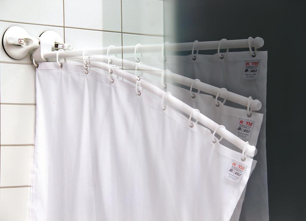 - mit einklips- und zerlegbarer 3-teiliger flexibler Vorhangstange aus PVC Rohr (weiß) mit abnehmbarem Abdeckstopfen.