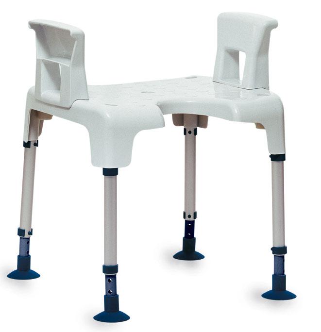 - Hier als Duschhocker mit Armlehnen und Hygieneaussparung