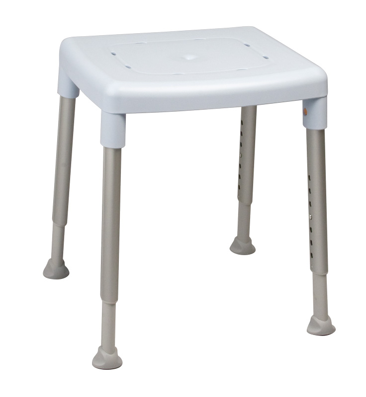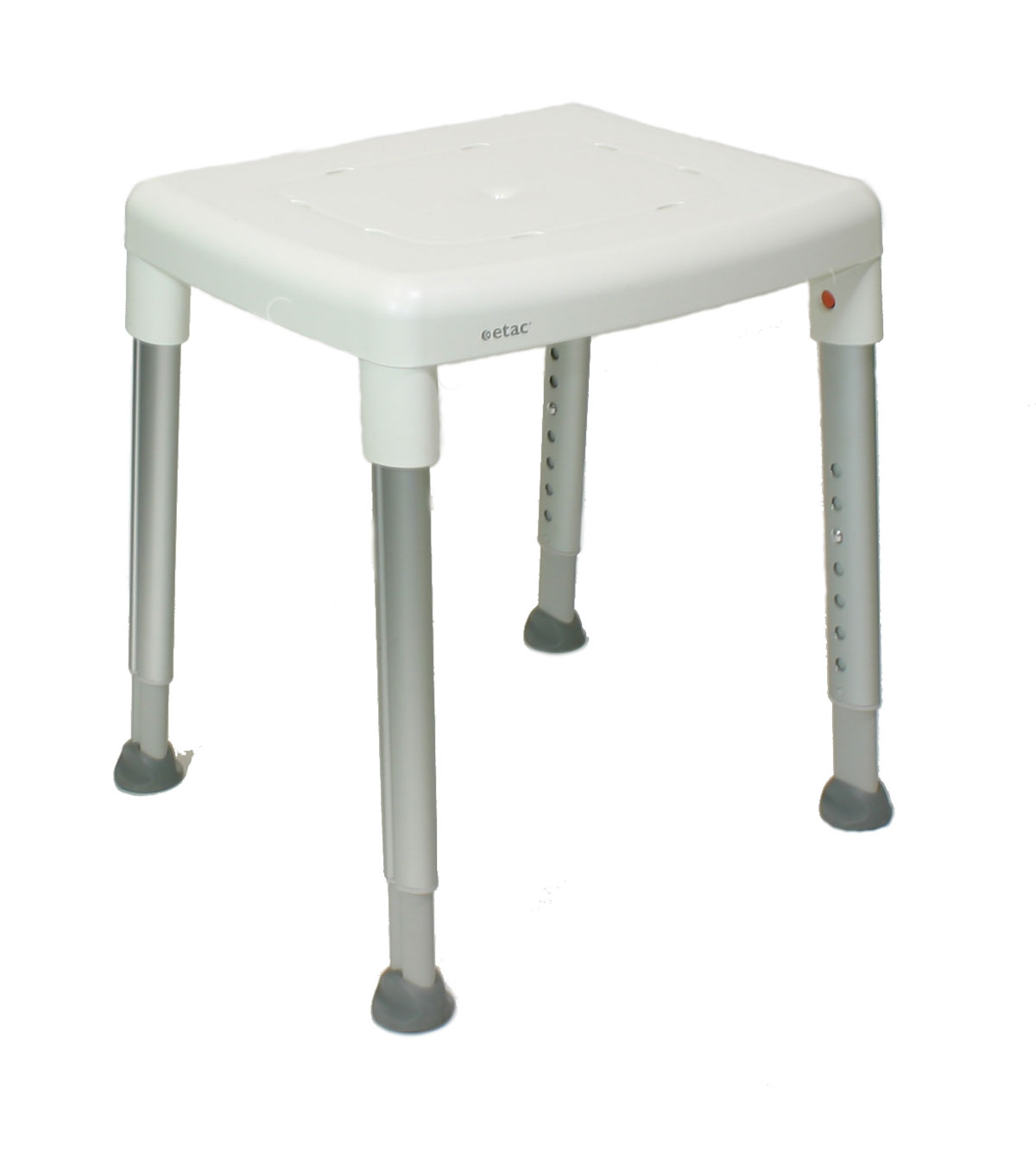 Der viereckige ETAC DuschhockerSmart ist äußerst einfach in der Handhabung, von geringem Gewicht und dabei trotzdem außerordentlich stabil. Der schwedische Duschhocker wird in den Duschsitz Farben weiß, grau und eisblau mit einer maximalen Belastbarkeit bis 150 kg oder mit verstärkten Beinen als Duschhocker Smart XL mit einer maximalen Belastbarkeit bis 200 kg angeboten. Die Sitzhilfe für Ihr Bad besitzt eine bequem, große Sitzfläche mit Ablauflöchern. Der Etac Duschhocker Smart ist über ein Clique-System einfach höhenverstellbar und ermöglicht Duschsitzhöhen von 42 bis 57 cm. Die einzelnen, in der Höhe verstellbaren Aluminium Teleskopbeine des Badhockers gewährleisten zudem einen sicheren Stand. Seine speziellen Gummifüße gleichen auch auf stark unebenen Böden Höhenunterschiede sicher aus.