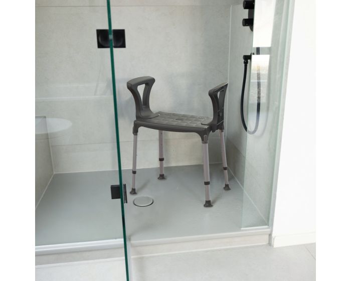 Hochbelastbar gibt Ihnen die 46,5 cm breite und 30 cm tiefe Sitzfläche zwischen den stützenden Armlehnen die nötige Sicherheit auf dem Duschsitz bei der selbstständigen Hygiene. Wenn Sie den Russka Laguna Duschhocker mit Armlehnen und geschlossener Sitzfläche kaufen, entscheiden Sie sich für einen schmalen Badhocker der Ihnen selbst in kleinen Duschen genügend Freiraum lässt.