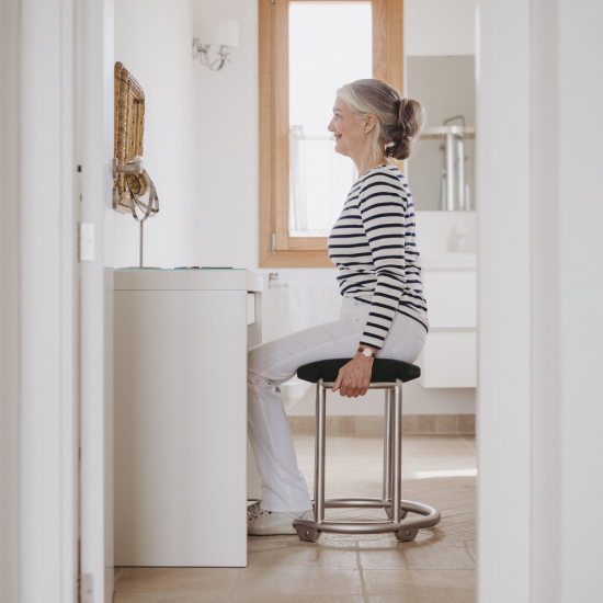 Sicher auf dem Badhocker 360° auf der Stelle drehen