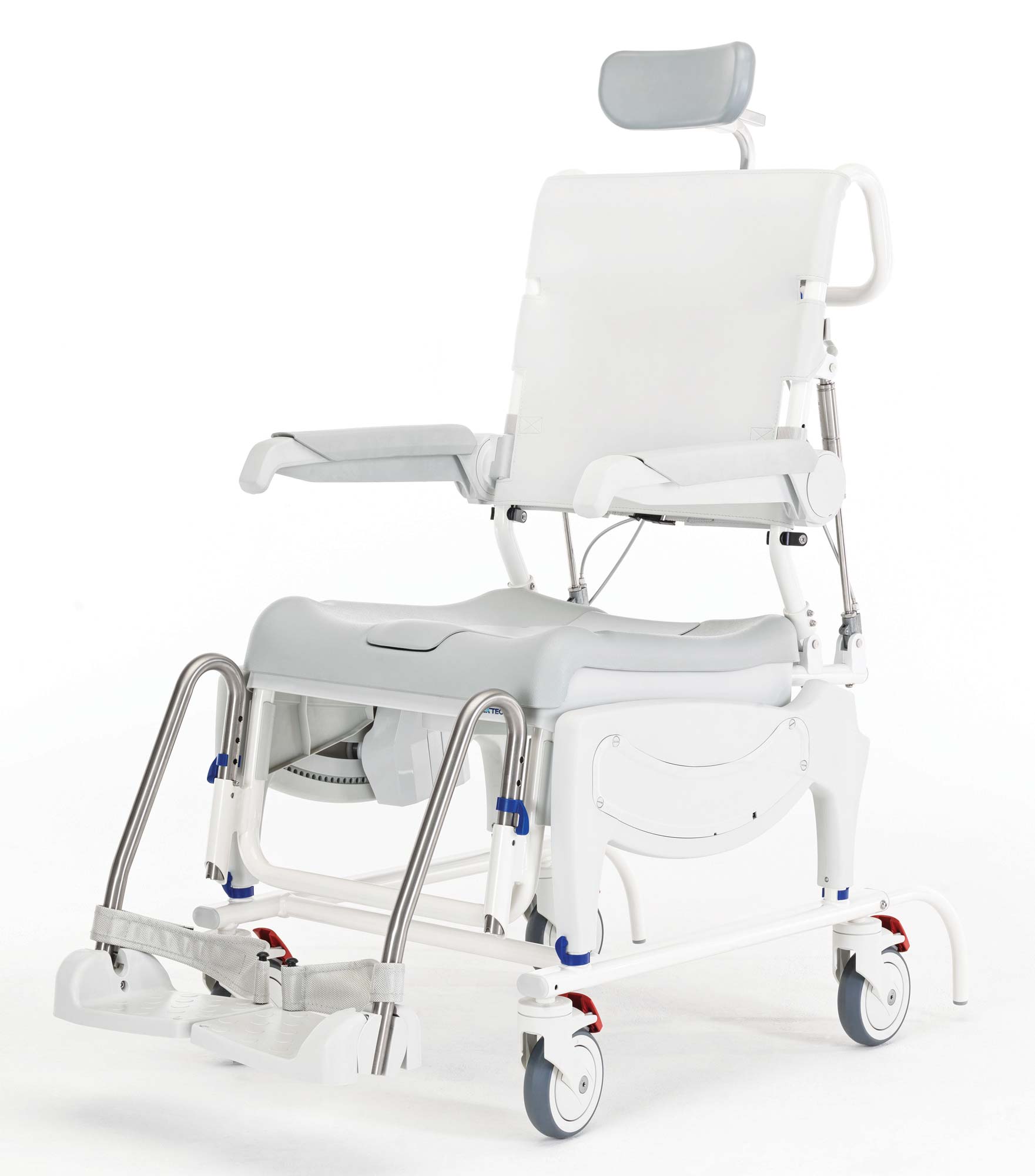 Der höhenverstellbare Dusch- und Toilettenrollstuhl Aquatec Ocean Dual VIP Ergo mit Kopfstütze, Sitzwinkelverstellung und Rückenwinkelverstellung bietet individuelle Pflege mit Blickkontakt ohne Kompromisse. Der Duschrollstuhl Aquatec Ocean Dual VIP Ergo ist nutzbar als höhenverstellbarer Duschrollstuhl oder als fahrbarer Toilettenstuhl.