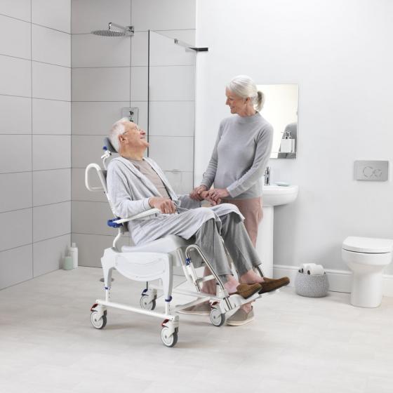 Der Schwerpunkt des Patienten bleibt während der Bewegung des Dusch- und Toilettenrollstuhl Aquatec Ocean Dual Vip Ergo nahezu unverändert. Die Sitz- und Rückenwinkelverstellung lässt sich einfach durch den Pfleger betätigen und schafft für den Nutzer ein angenehmes und sicheres Pflegeerlebnis. Das Duschen während der Körperpflege betreffen immer den Intimbereich des Patienten. Ist dieser körperlich eingeschränkt, erfordert die persönliche Hygiene in der Pflege einen besonders würdevollen Umgang.