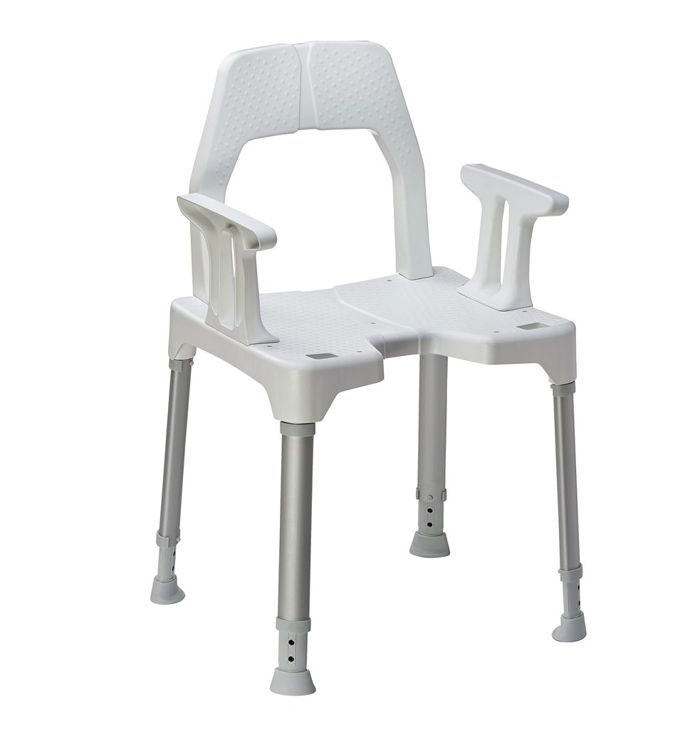 Der Tayo Duschstuhl kann wahlweise mit oder ohne Arm- und Rückenlehne genutzt werden. Ohne Armlehnen hat er eine Sitzbreite von 46 cm, mit den stützenden Armlehnen von 42 cm. Der Tayo Duschstuhl wird inklusive der aufsteckbaren Armlehnen geliefert. Fehlt Ihnen die Kraft zum Aufstehen, unterstützen Sie die Armlehnen und geben Ihnen die Möglichkeit Ihre Eigenständigkeit während der persönlichen Hygiene im Bad zu erhalten.