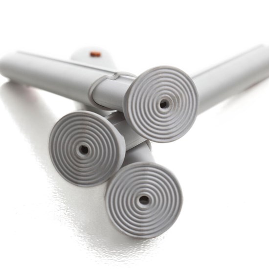 Die Idee im Aufbau basiert auf einem modularen Konzept, das für jede Baustein-Kombination eine optimale Anpassung an die Standfläche des Hilfsmittels sicherstellt. Das gewährleistet selbst auf Böden mit starken Unebenheiten einen festen, sicheren Stand des ETAC Swift.