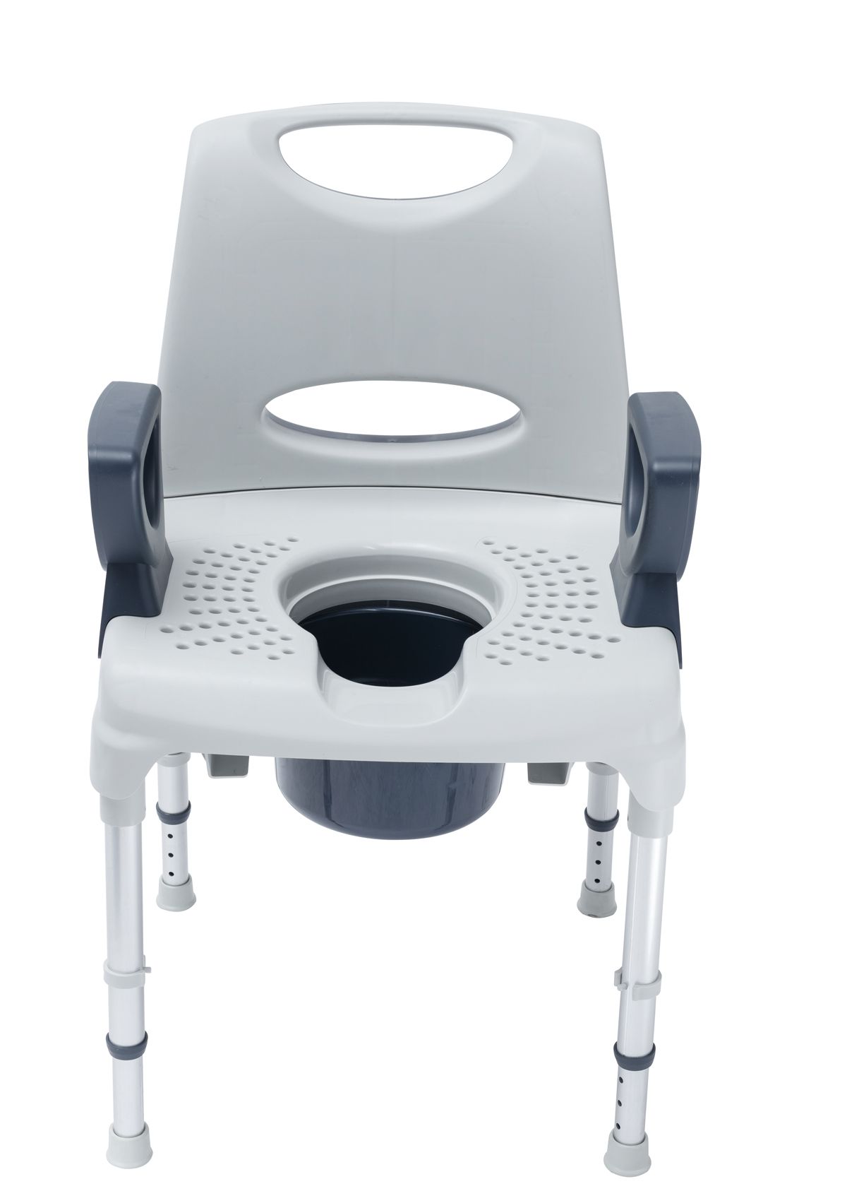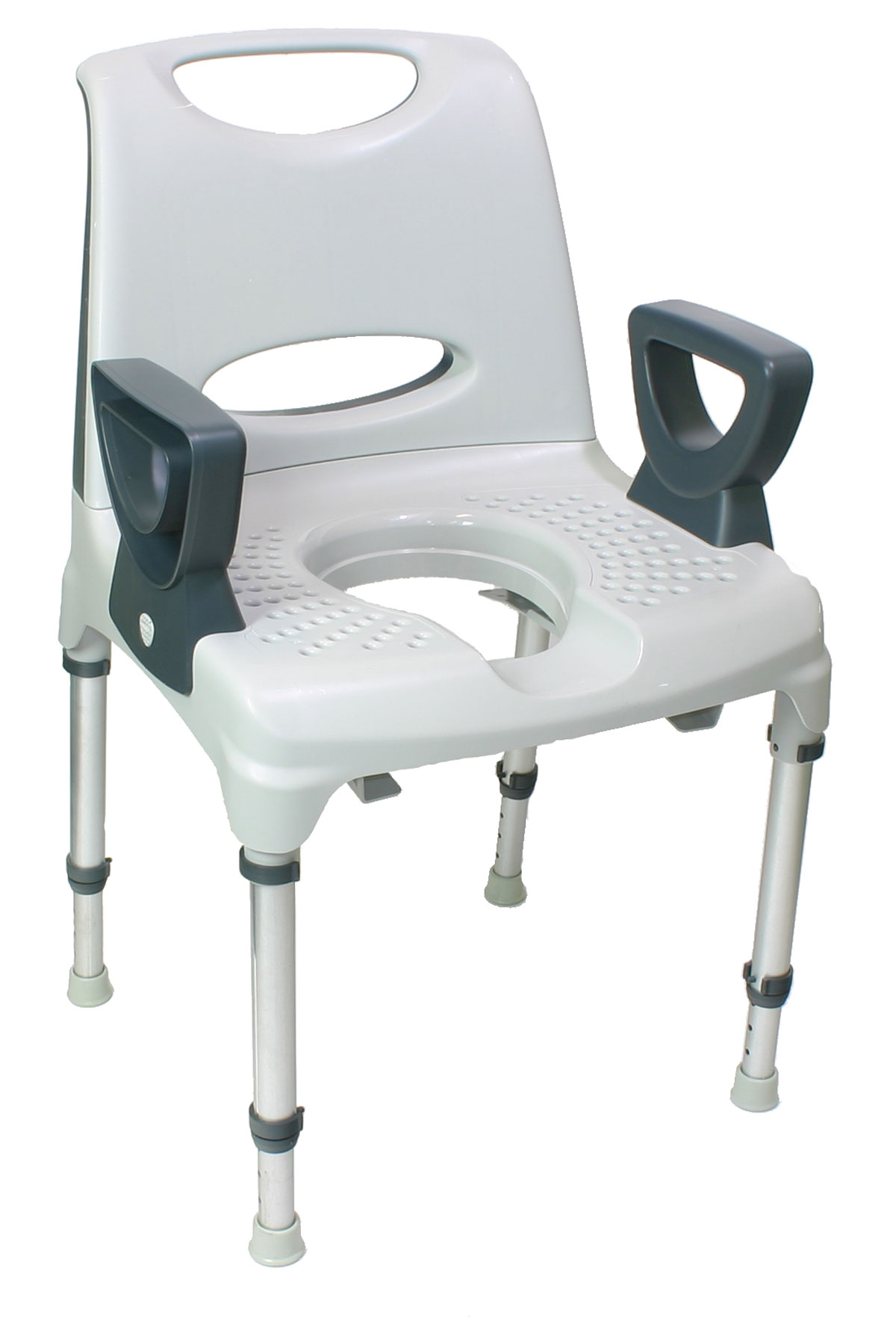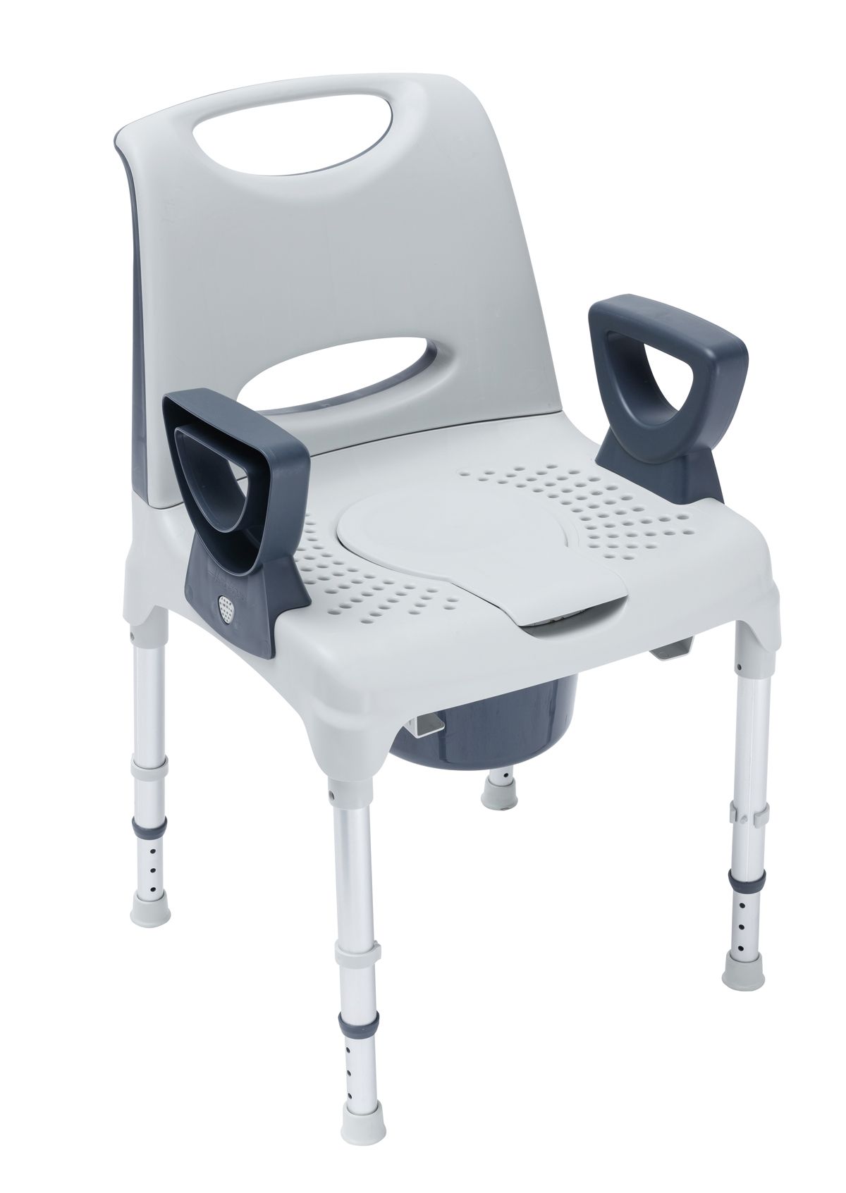 Der Multifunktions-Dusch- und Toilettenstuhl AQ-Tica Komfort mit grauen Armlehnen bietet Ihnen 3 Kompaktlösungen für die Pflege zu Hause an. Ob als bis 130 kg belastbares Toilettenstützgestell über Ihrem WC-Becken, als Toilettenstuhl neben dem Pflegebett oder als Duschstuhl für die Erleichterung der täglichen Körperpflege. Das multifunktionale Hilfsmittel aus dem Sanitätshaus vereint modernes Design mit hoher Funktionalität und Stabilität.