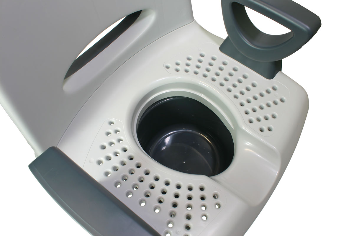 Einfache Handhabung: Toilettentopf kann von vorne oder hinten entnommen werden