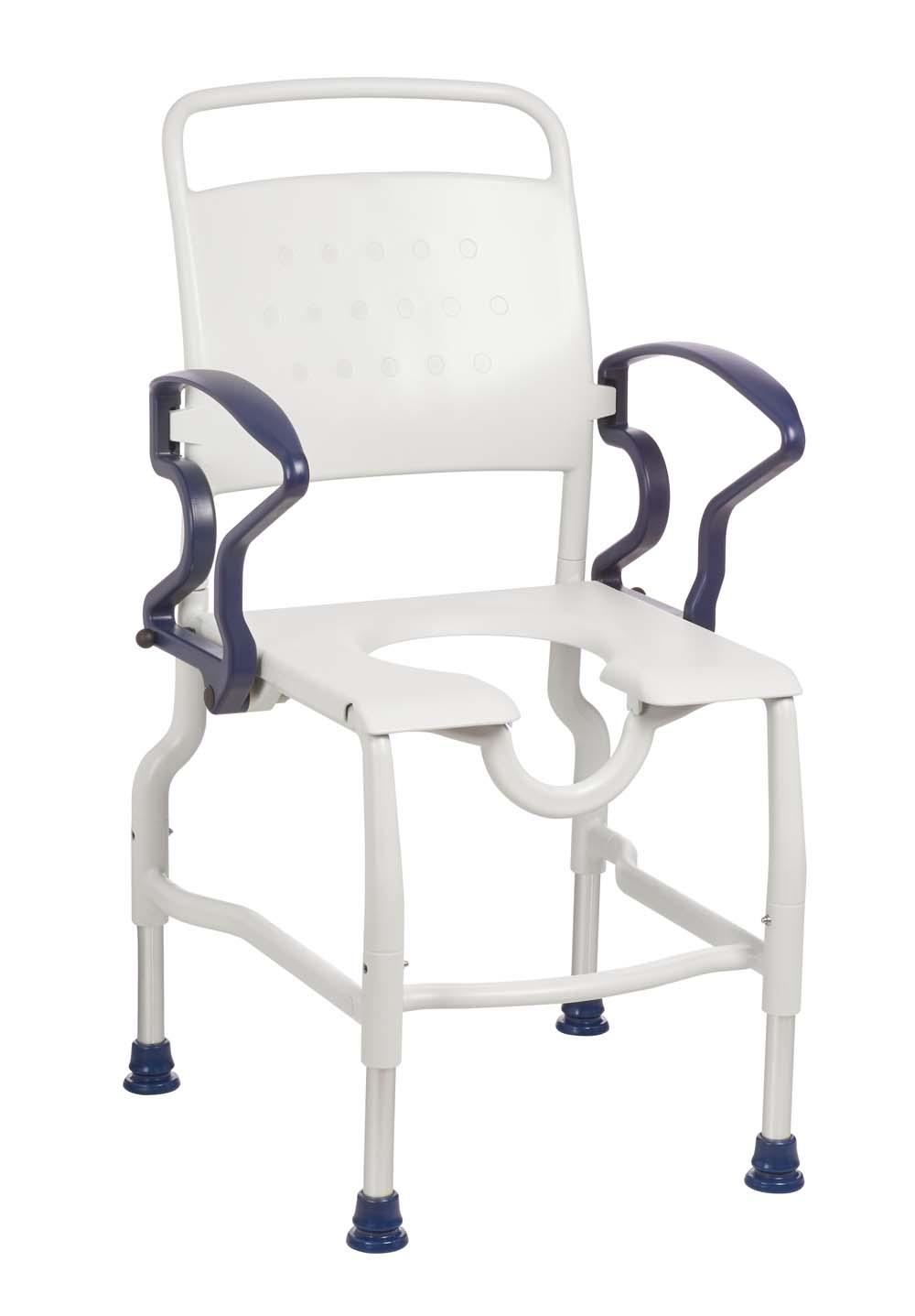 Neben dem Standardmodell Duschstuhl Zwickau ist er auch als höhenverstellbares Modell Duschstuhl Würzburg lieferbar. Optional mit weichem PU-Sitz
