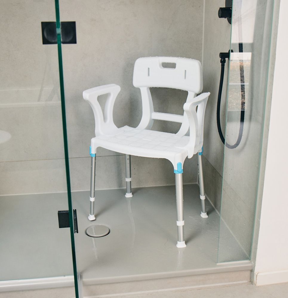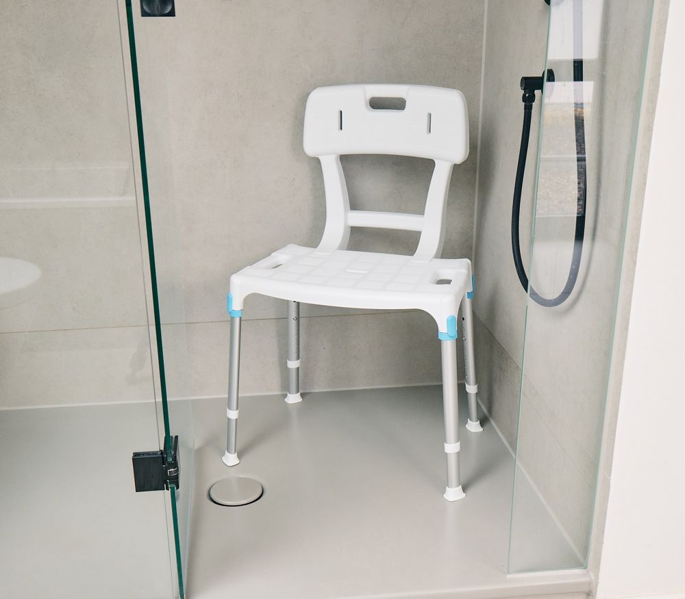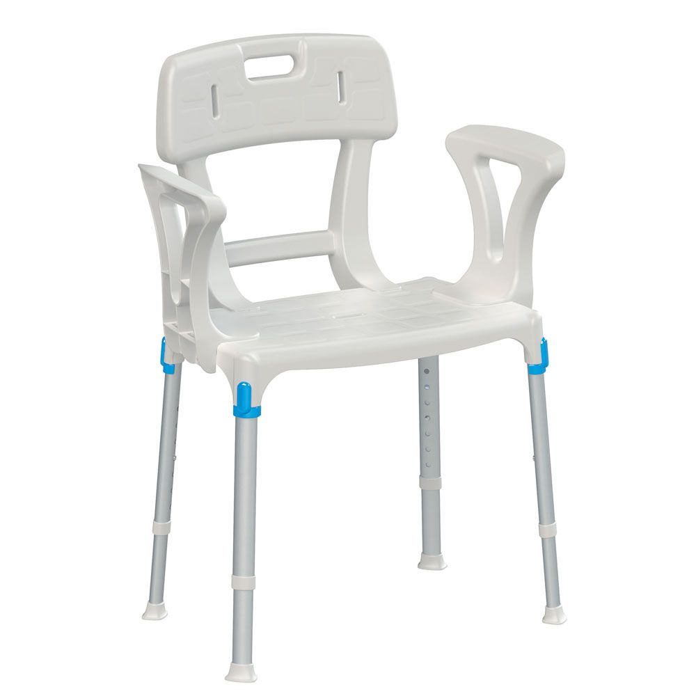 Der bequeme Russka Duschstuhl Laguna mit seiner geschlossenen Sitzfläche wird in Italien produziert und vereint schickes Design mit höchster Qualität und Flexibilität.