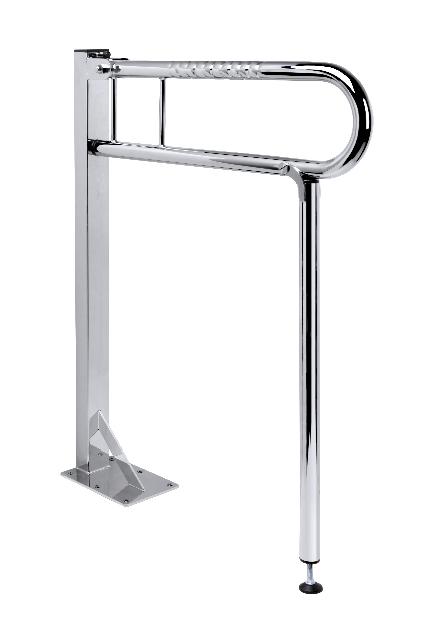 Der Edelstahl FRELU Stützklappgriff mit Standsäule und Bodenstütze für die Bodenmontage bietet Ihnen als 150 kg hochbelastbarer Bad-Haltegriff neben der Toilette Sicherheit beim Transfer zur eigenständigen WC-Benutzung. Optional kann der am Boden befestigte Stützgriff mit Bodenstütze gleich mit Toilettenpapierhalter ausgestattet werden. Als stützender Bad-Haltegriff mit hochklappbarem Griffbügel sorgt der polierte Edelstahl Klappgriff mit Fingergriff-Prägung für mehr Selbstständigkeit und Sicherheit körperlich beeinträchtigten Personen im Badezimmer und lässt sich, je nach Bedarf, praktisch bei Nichtbenutzung hoch- und ausklappen.