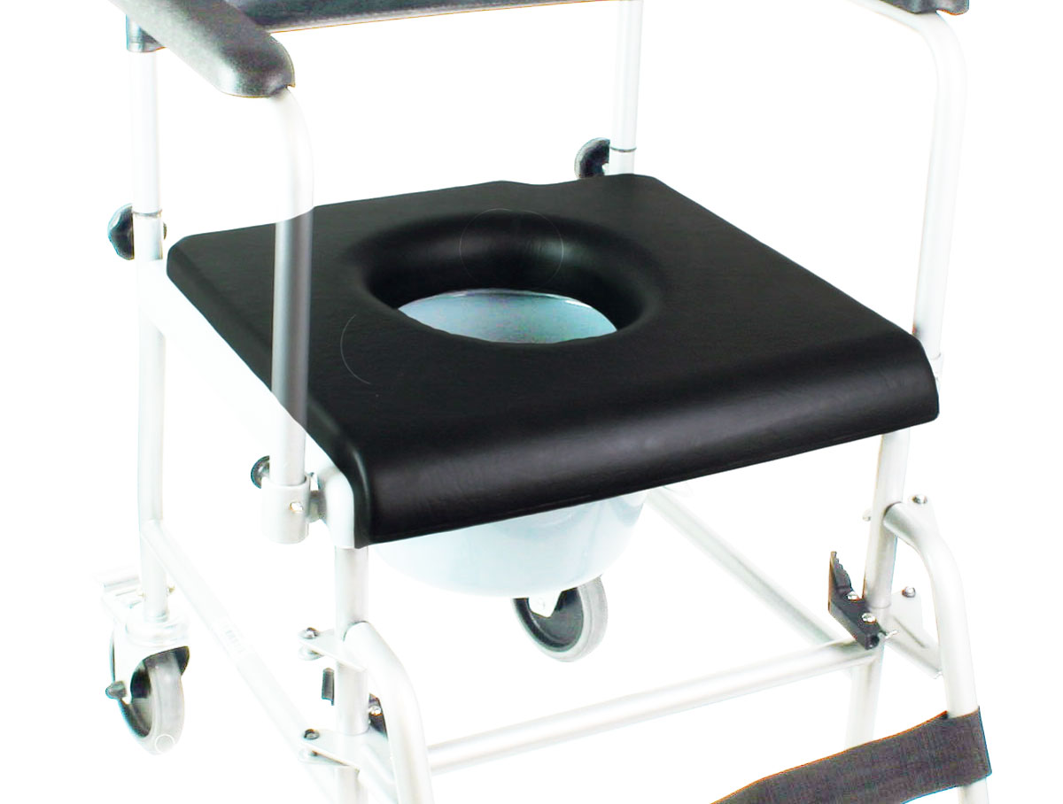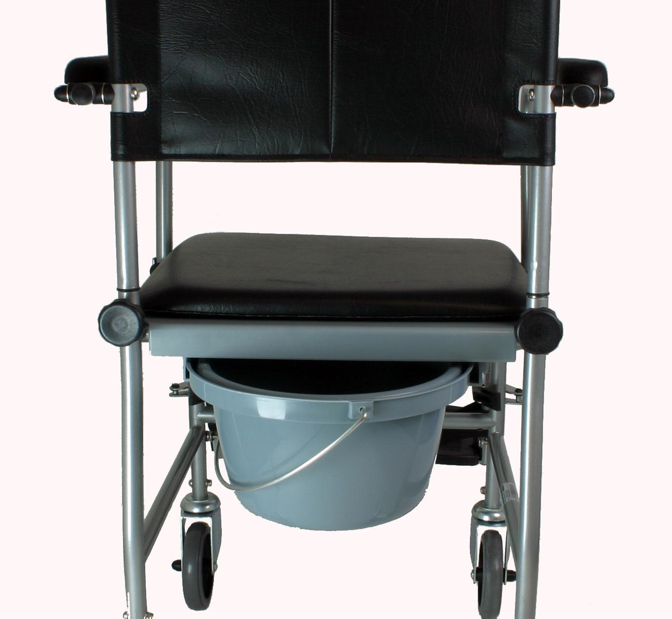 - Ohne den Toiletteneimer kann der fahrbare Toilettenstuhl mit Rädern über das WC-Becken gefahren werden und ermöglicht so den Toilettengang ohne mühevolles Umsetzen.
