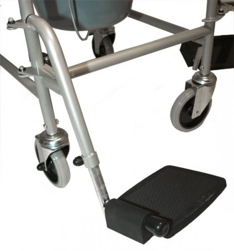 - Seine stufenlos in der Höhe einstellbaren Fußstützen lassen sich genau wie die Rückenlehne des Toilettenrollstuhls ohne Werkzeug abnehmen. Sie erhalten dann ein kompaktes Transportmaß und können das Hilfsmittel z.B. mit dem PKW mitnehmen.
