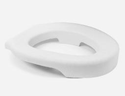 Die weiße, weiche Toilettensitzauflage von Mobilex wird einfach auf die vorhandene normale Toilettensitzbrille des WCs gesteckt. Das Sitzpolster aus Polyurethan ist optional in Schwarz lieferbar und entlastet schmerzempfindlichen Personen das Sitzen auf der Toilettenbrille.
