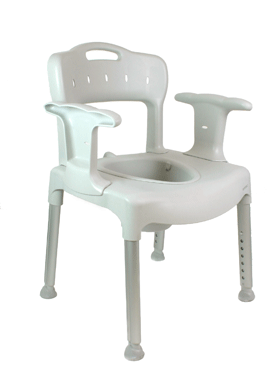Die ergonomisch geformte Rückenlehne bietet Entspannung und Sicherheit. Der Swift Toilettenstuhl besitzt die gleichen Eigenschaften wie der Swift Duschstuhl und kann auch im Nassbereich statt einer Toilettensitzerhöhung über dem Toilettenbecken eingesetzt werden.