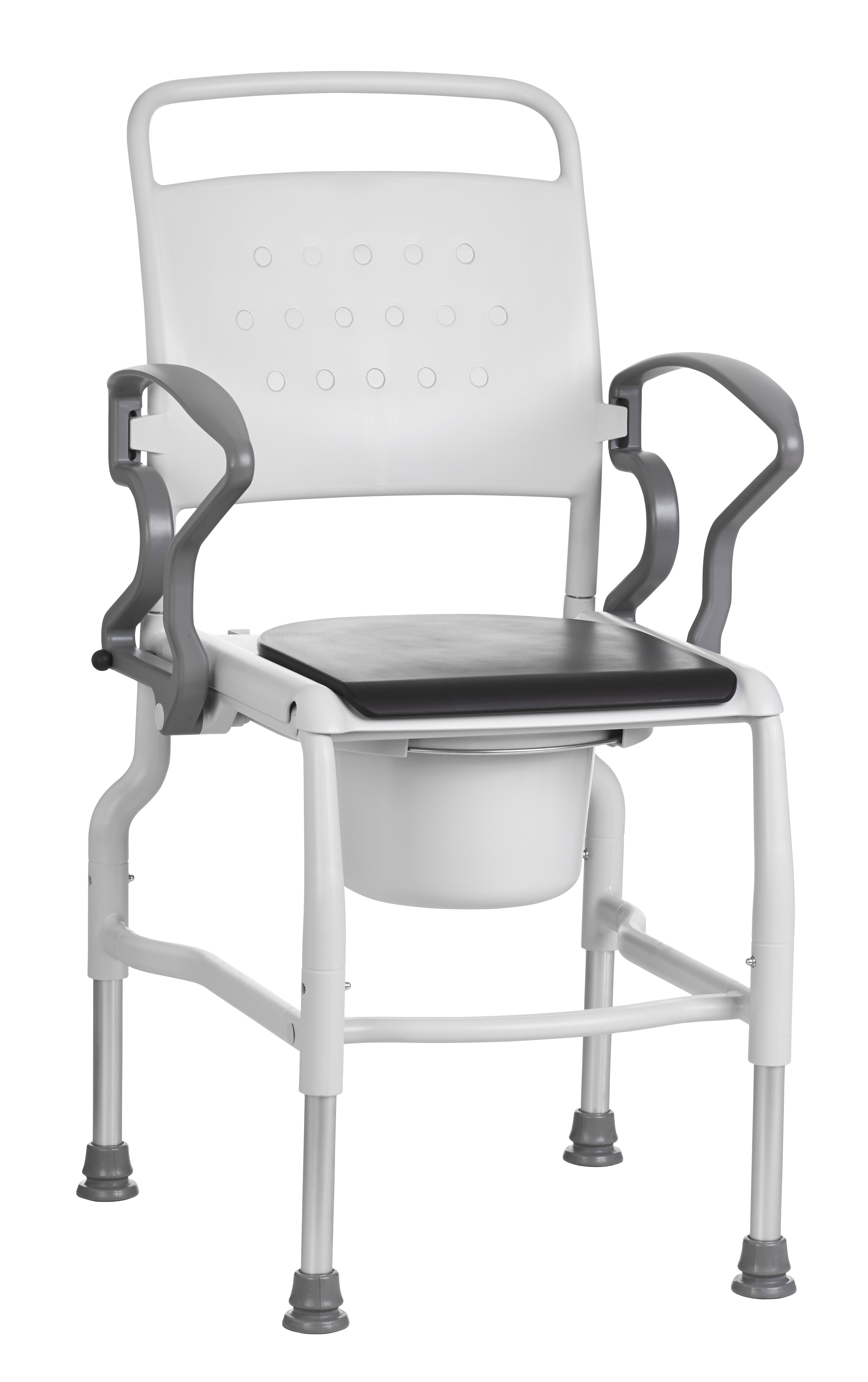 Der Rebotec Toilettenstuhl Kiel bietet funktionalen Komfort. Ausgestattet mit höhenverstellbaren Beinen mit Gummipuffer, einem abdeckenden weichen Sitzpolster und nach hinten abschwenkbaren Armlehnen für den seitlichen Transfer erleichtert der Rebotec Kiel als Hilfsmittel aus dem Sanitätshaus die Pflege zu Hause für körperlich eingeschränkte Patienten. Der höhenverstellbare Toilettenstuhl ist dank seiner abschwenkbaren Armlehnen leichter vom Pflegebett als Nachtstuhl erreichbar und kann tagsüber als bequeme Sitzgelegenheit zum Umziehen genutzt werden.