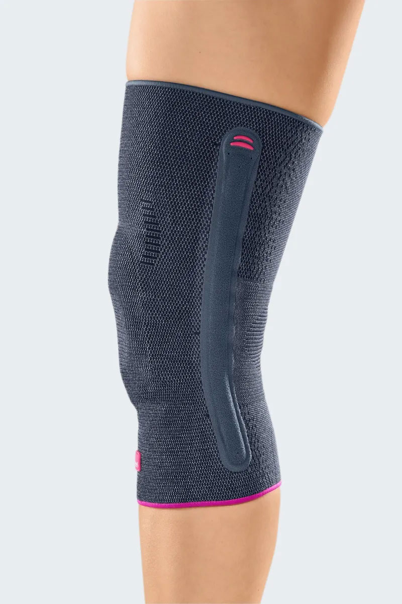 Die Medi Knieorthese Genumedi PT dient der Verbesserung der Patellaführung. Genumedi PT ist eine Orthese zur Beeinflussung des Gleitweges der Kniescheibe, auch Patella genannt. Die integrierten Silikon-Pelotten lindern Schmerzen und führen zum Abbau von Schwellungen (wie Ödemen oder Hämatomen). Das komplexe Pelotten-Design beeinflusst positiv eine korrekte Patellaführung. Dabei kann der Druck über das Gurtband der Kniebandage individuell eingestellt werden.
