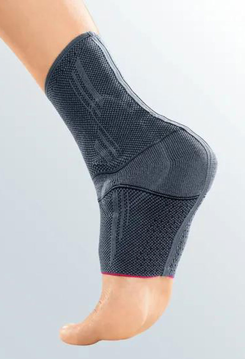 Die 3D-Silikon-Pelotte der Levamed Knöchelbandage aus dem Online Sanitätshaus trägt zum Abbau von Schwellungen (Ödeme, Hämatome) bei. Das kompressive Gestrick am Sprunggelenk-Bereich kann darüber hinaus das Empfinden des eigenen Körpers (Propriozeption) verbessern. Dies kann wiederum die körpereigene Führung und Stabilisierung des Gelenks unterstützen.