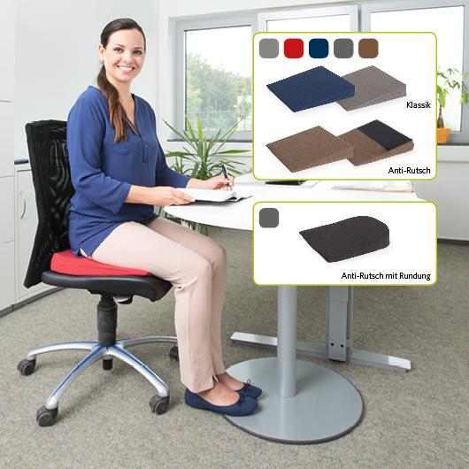 Das Keilkissen Klassik ermöglicht eine besonders entspannte Sitzposition. Rückenschmerzen sind oft die Folge einer falschen Körperhaltung während der Büroarbeit. Eine richtige, aufrechte Haltung, die Sie mithilfe des Keilkissens Klassik erreichen können, entlastet die Bandscheiben und kräftigt gleichzeitig die Rückenmuskulatur. Das Keilkissen Klassik kippt das Becken beim Sitzen leicht nach vorn. So verhilft es Ihnen zu einer optimalen Sitzhaltung. Ob im Büro, im Auto oder zu Hause unterstützt Sie das Klassik Keilkissen beim Beschwerde freien Sitzen.