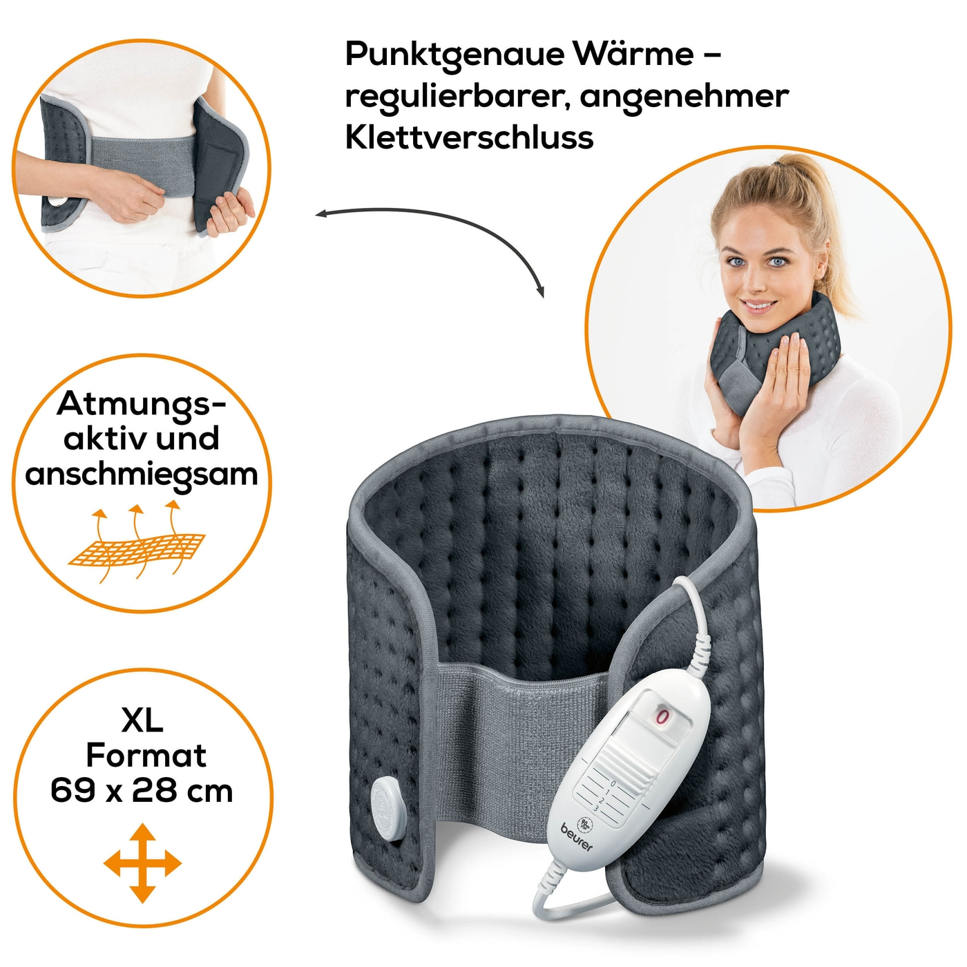 Ausgestattet mit Schnellheizung, dem BSS-Sicherheitssystem, einer Abschaltautomatik nach ca. 90 Minuten, 3 beleuchtete Temperaturstufen und dem abnehmbaren Schalter, der es ermöglicht den Heizkörper bei 30 °C in der Maschine zu waschen, bietet Ihnen das Beurer Heizkissen HK49 Cosy mit seiner elektronischen Temperaturregelung eine hilfreiche Alternative zu herkömmlichen Nierenwärmern.
