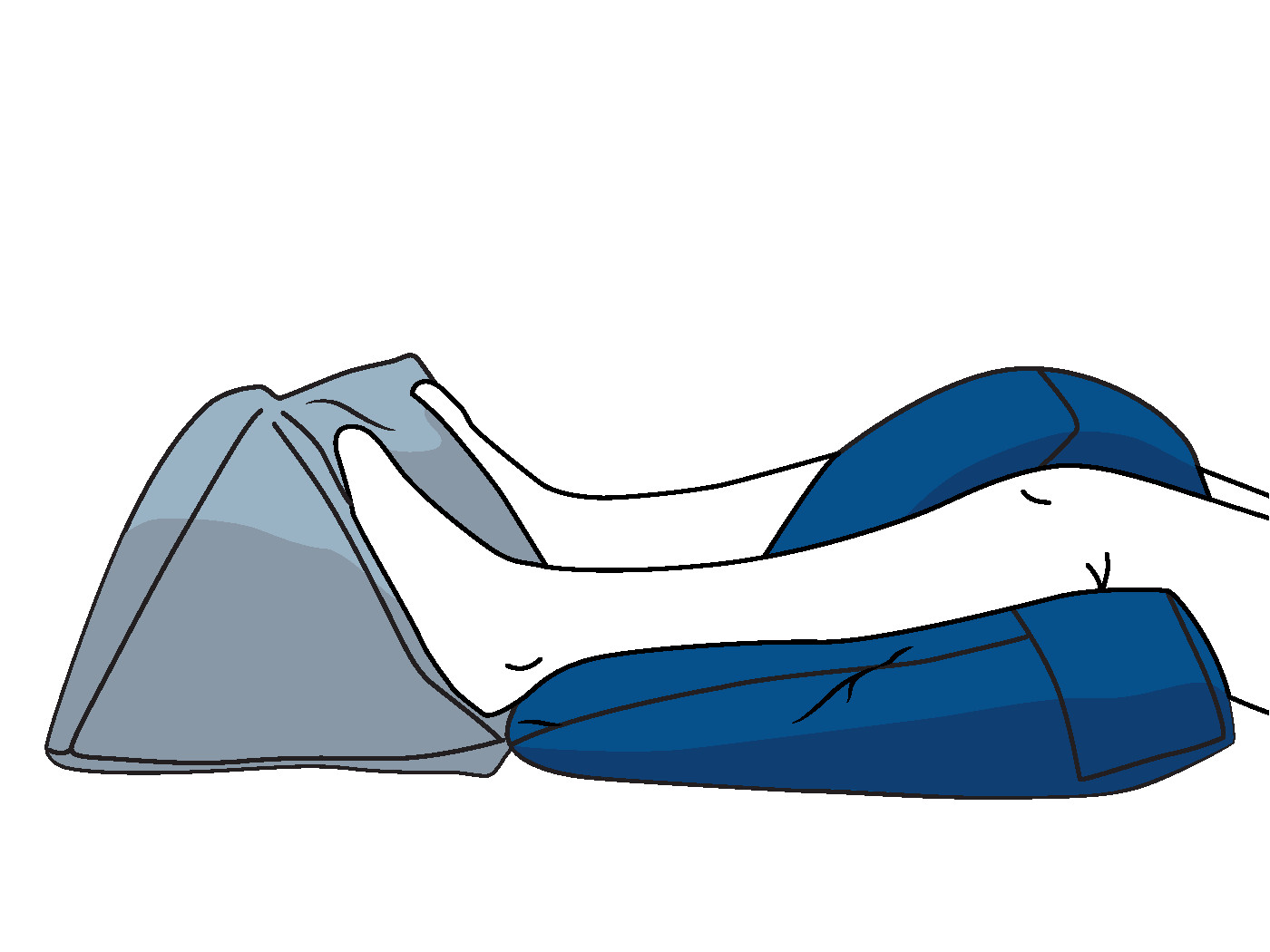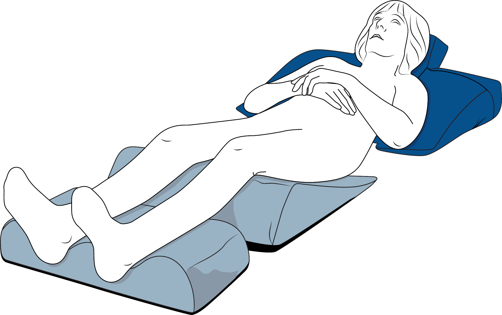 Außerdem ist es eine wirksame Positionierungshilfe, wenn Sie das Kissen unterhalb der Knie platzieren. Die seitlichen Ausleger der Lagerungshilfe liegen hierbei unter den Oberschenkeln. Ein erhöhter Mittelteil gewährleistet so die Abduktion im Kniebereich. - Fersenfreilagerung