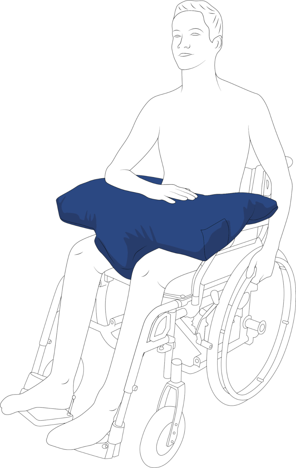 Benötigen Sie für Ihren Patienten eine Stabilisierung der Unterarme während des Sitzens im Rollstuhl, können Sie das SHP Carepur Semi-Flower-Kissen auf den Oberschenkeln platzieren.