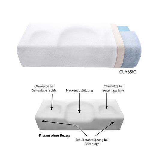 Das Original orthopädische Witschi Kopfkissen Classic-Line Standard aus dem Sanitätshaus stützt, entlastet und entspannt Sie im Liegen dort, wo herkömmliche Kopfkissen versagen. Kein Zurechtknüllen oder schütteln mehr, denn Ihr Witschi Schlafkissen hält seine Form in jeder Schlaflage. Schon nach wenigen Nächten Eingewöhnungszeit möchten Sie das Witschi-Kopfkissen Classic nicht mehr missen.