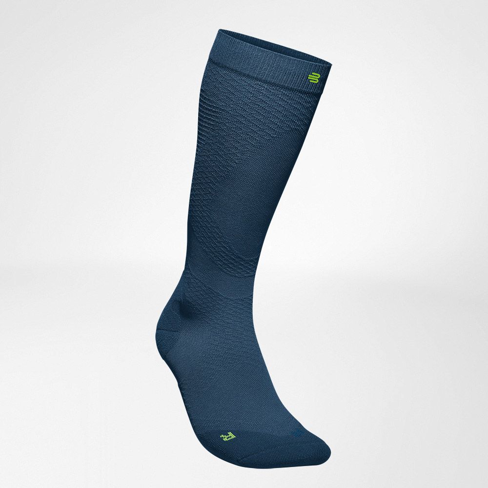 Bauerfeind Men Run Ultralight Compression Socks in modernen sportlichen Farben sind paarweise erhältlich, strapazierfähig, atmungsaktiv und sitzen sicher durch das Silikonhaftband am oberen Abschluss.