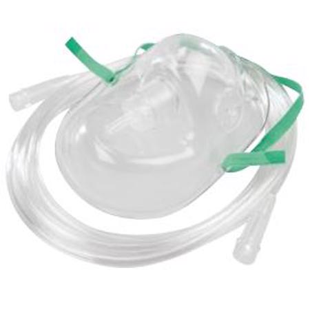 Die Sauerstoffmaske aus transparentem PVC, für Kinder oder Erwachsene ist ausgestattet mit formbarem Nasenclip und elastischem Kopfhalteband.