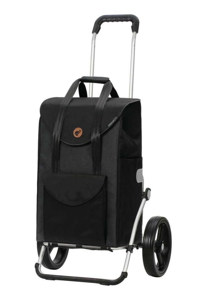 Mit seinen großen Leichtlaufrädern ist der schwarze Andersen Royal Shopper Senta auch für unebene Wege geeignet. Robust gebaut, klein zusammenfaltbar kann die Einkaufshilfe Getränkekisten transportieren und lässt sich am Einkaufswagen anbringen. Ausgestattet ist der Andersen Royal Shopper Senta mit Kordelzug-Verschluss, einer Seitentasche und Innentasche für Kleinigkeiten. Damit Sie in der dunklen Jahreszeit gut sichtbar im Straßenverkehr sind, befinden sich seitlich Reflektoren. Als Fahrradanhänger ist der Andersen Royal Shopper Senta außerdem einsetzbar. Mit seinem Gestell aus Aluminium ist er maximal bis 50 kg belastbar.