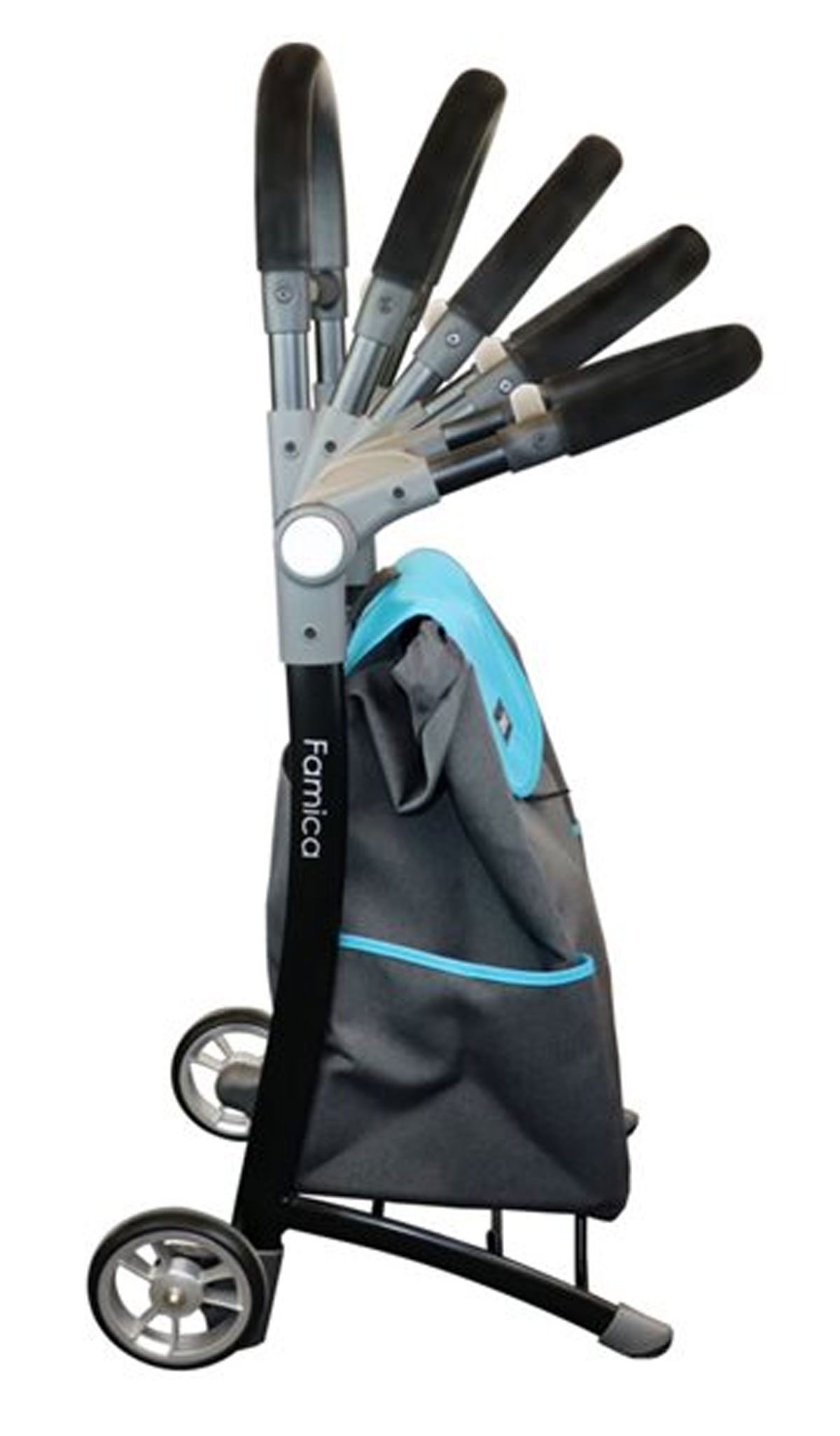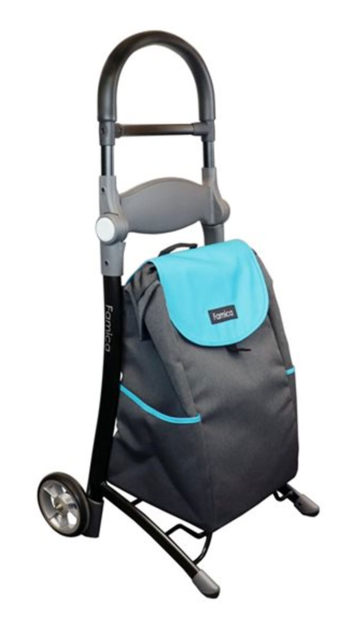 Mit dem Mobilex Einkaufstrolley Koala lassen sich Ihre Einkäufe bis 35 kg leicht nach Hause transportieren. Der Einkaufsshopper bietet für Ihre Laufpause eine Sitzgelegenheit auf 65 cm Höhe. Als mobile Einkaufshilfe erhält ein Einkaufshopper die Selbstständigkeit, wenn Ausdauer, Kraft oder die Motorik beeinträchtigt sind. Fehlt zwischendurch die Puste, nutzen Sie den Sitzplatz mit einer Belastbarkeit bis 110 kg. Sie können Ihre Einkäufe in der blau grauen Einkaufstasche sicher nach Hause transportieren. Auch eine Getränkekiste kann statt der Tasche sicher befördert werden.