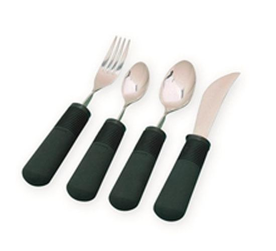 Für all die Personen, die unter Zittern der Hände bzw. eingeschränkter Kontrolle der Hände leiden, gibt es die schwere Good Grips Besteck Serie, die mit ca. 170 g schwerer als die normale Version ist. Aufgrund des höheren Gewichts in den Handgriffen lassen sich die Besteckteile kontrollierter halten.