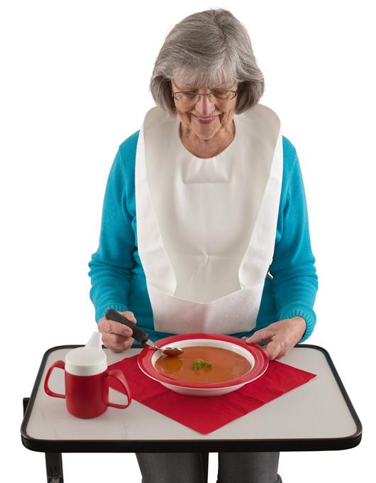 Die Schutzserviette mit knöpfbarer Tasche dient zum Auffangen von Speiseresten, die während des Essens herunterfallen. Wäsche und Kleidung werden dadurch vor Verschmutzung geschützt. Sie kann je nach Bedarf beidseitig getragen werden: Die Baumwoll-Seite kann mit ihrer Saugfähigkeit als Oberseite zusätzlich Flüssigkeiten und Speisereste abfangen oder für ein angenehmes Tragegefühl als Unterseite genutzt werden. Einschränkungen in der Motorik führen auch zu Problemen beim selbstständigen Essen. Oft benötigen Personen krankheitsbedingt Unterstützung beim Essen. Dies wieder ganz allein machen zu können ist ein großer Schritt und stärkt das Selbstvertrauen.