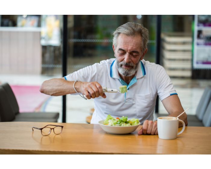 Ein Tremor ist eine Bewegungsstörung, die rhythmisch, unwillkürlich und oszillierend ist. Der Patient hat keinen Einfluss auf diese zitternde Bewegungsstörung und ist deshalb in vielen alltäglichen Bewegungen beeinträchtigt und auf Hilfe angewiesen. Je nach Ausprägung ist somit das eigenständige Essen nicht mehr möglich und es wird Unterstützung benötigt. Das selbst stabilisierende Essbesteck Bravo Twist mit Bewegungssensoren schafft hier Abhilfe, ermöglicht wieder mehr Eigenständigkeit und schafft so für den Patienten positive Erlebnisse im Alltag.