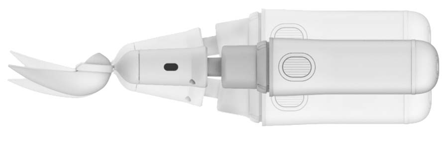 - Im Handgriff ist die gesamte Elektronik sowie der Akku untergebracht. Zahlreiche Bewegungssensoren erfassen kontinuierlich die räumliche Position des Essbestecks. Durch die gewonnenen Daten kann die Elektronik mit kleinsten Elektromotoren blitzschnell die Halterung für den Aufsatz steuern und die Zitterbewegung der Hände kann ausgeglichen werden. Die Sensoren erkennen selbstständig, ob die linke oder rechte Hand genutzt wird und richten sich danach aus.