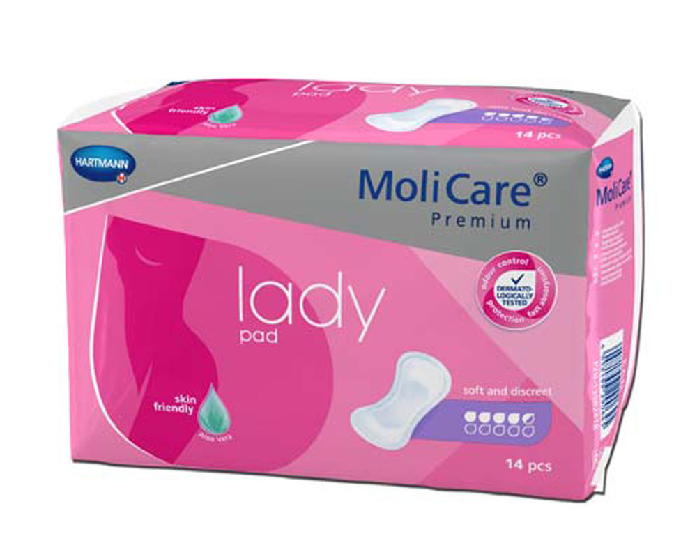 Die anatomisch geformte Einlage Molicare Premium Lady Pad maxi mit Dry-Plus-Vlies und geruchsbindender Ultra-Saugschicht schützt Sie bei leichter bis mittlerer Blasenschwäche. Sie ist auch geeignet als Schutz nach vaginalen Eingriffen oder als komfortable, auslaufsichere Vorlage nach Entbindungen.