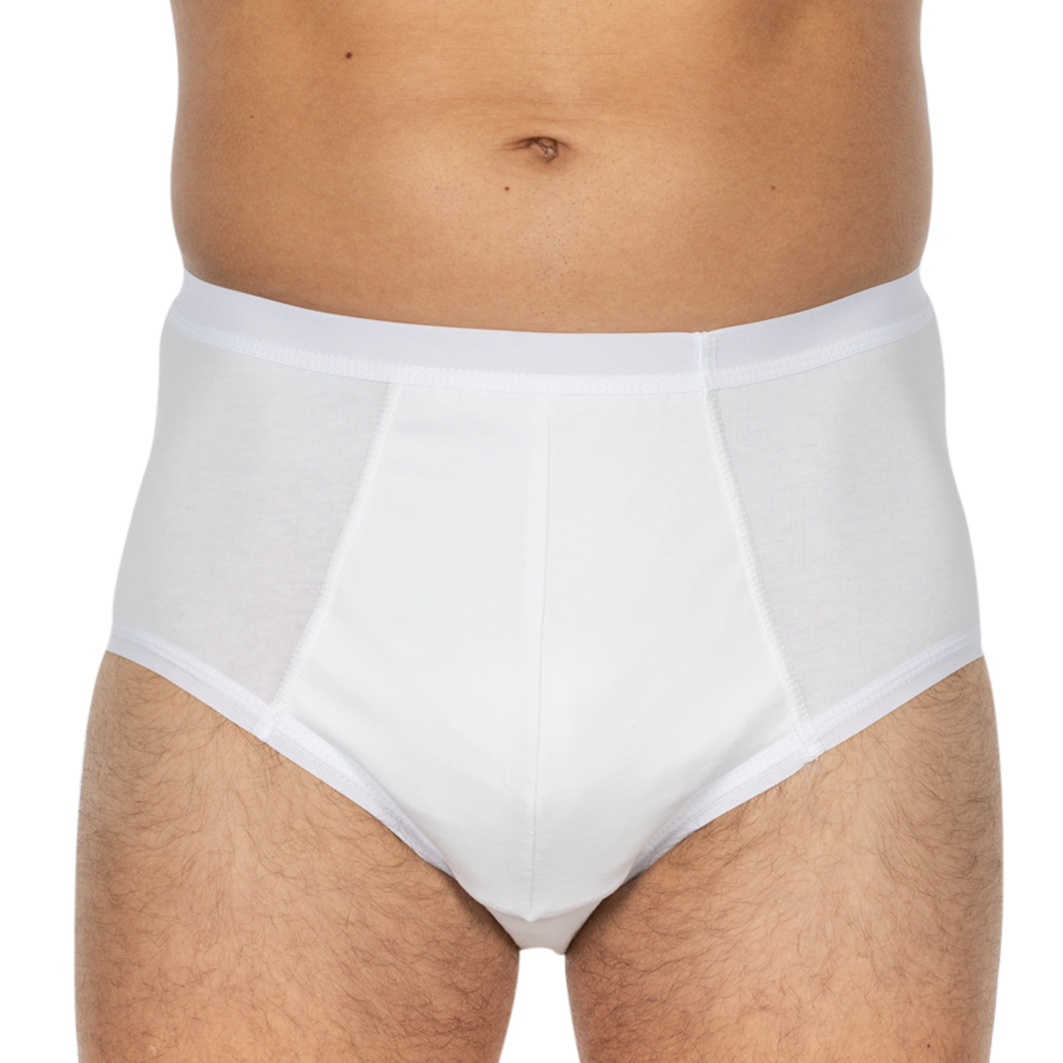 Im Alter oder nach einer Prostata-Operation leiden Herren häufig an Blasenschwäche. In vielen Fällen führt dies aus Angst, durch Geruch oder Feuchtigkeit aufzufallen, zum Rückzug aus sozialen Beziehungen. Mit dem Suprima Bodyguard Inkontinenzslip können Sie unbeschwert am Leben und sportlichen Aktivitäten teilnehmen. Eine praktische Fixierlasche im Suprima Bodyguard-Slip für Herren sorgt dafür, dass Ihre Einweg-Inkontinenzprodukte eingesetzt werden können und so Flüssigkeit effektiv aufgesaugt wird. Die Passform und das weiche Mischgewebe mit einem hohen Anteil Baumwolle bieten Ihnen einen hohen Tragekomfort. Die Suprima Inkontinenzwäsche ähnelt stark Ihrer normalen Unterwäsche, sodass Sie Ihre Unternehmungen trotz Blasenschwäche bei höchster Diskretion und gleichzeitig effektivem Schutz erleben können.