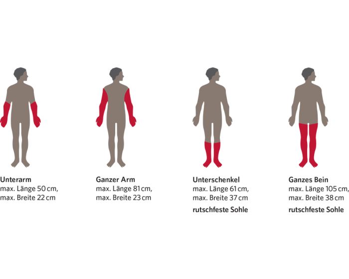 - Nässeschutz für das ganze Bein - Länge: maximal 105 cm / Breite 38 cm