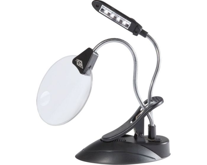 Die praktische WEDO Tischlupe mit LED-Licht schafft Ihnen perfekte Arbeitsbedingungen zum Basteln und anderen filigranen Arbeiten. Die große, rahmenlose Kunststoff-Linse enthält eine kleine, integrierte Linse mit 4-facher Vergrößerung. Als Tischlupe für Ihre Hobbys ist sie mit einer separaten LED-Lampe ausgestattet, die mit 4 LEDs superhelles Licht spendet. Sowohl die Tischlupe als auch die LED-Lampe können durch ihren flexiblen Hals optimal ausgerichtet werden. Zusätzlich besitzt die Wedo Tischlupe eine Klemme mit der die Befestigung, z. B. an der Tischkante, möglich.