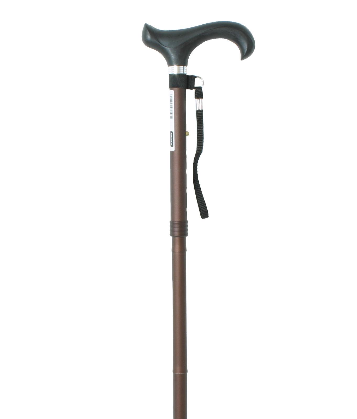 Dank der 5-fachen Höhenverstellung können Sie Ihren Faltstock Mokka matt individuell in einer Griffhöhe von 84 bis 94 cm anpassen. Die mitgelieferte Gehstockschlaufe sorgt dafür, dass Sie den Faltstock immer bei der Hand haben. Der Softeinsatz im Derby-Handgriff absorbiert den Druck und ist angenehm zu halten. Auch bei längerem Gebrauch liegt der Derby-Griff sicher in der Hand.