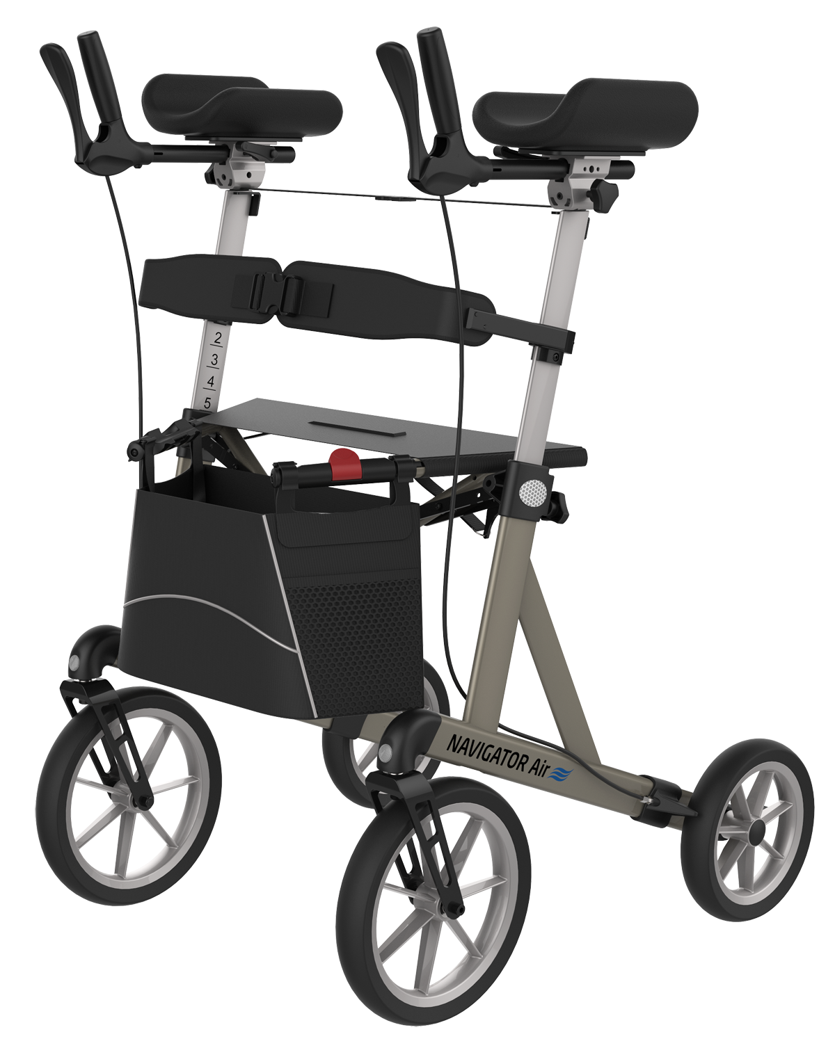 - Der Navigator Air ist mit stabilen und komfortablen Unterarmauflagen ausgestattet, die in der Höhe von 87 bis 110 cm verstellbar sind.