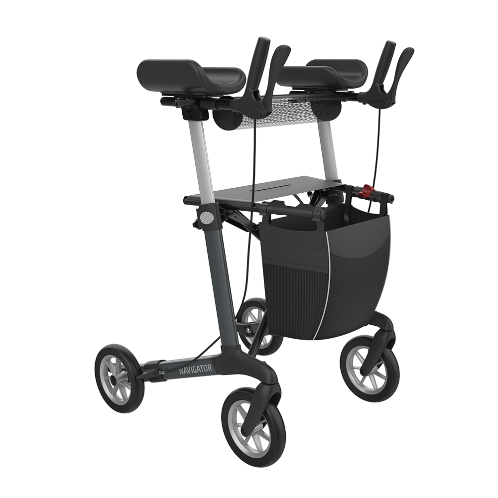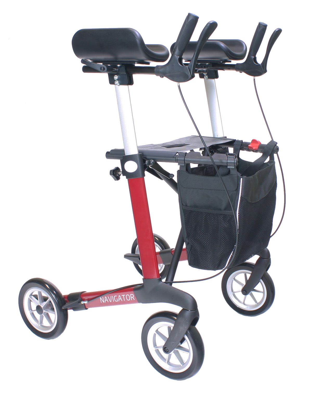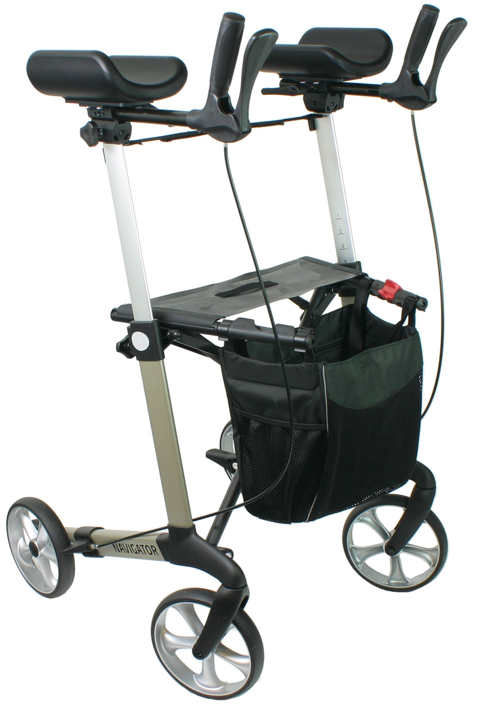 - Der einzigartige Navigator ist ein Rollator mit Unterarmauflagen, der speziell für Benutzer mit Arthritis und/oder eingeschränkter Funktion der Arme und Hände entwickelt wurde. Er ist mit sehr stabilen und komfortablen Unterarmauflagen ausgestattet, die in der Höhe beim Medium Modell in einem Bereich von 75 bis 100 cm und beim Large Modell in einem Bereich von 90 bis 115 cm höhenverstellbar sind.