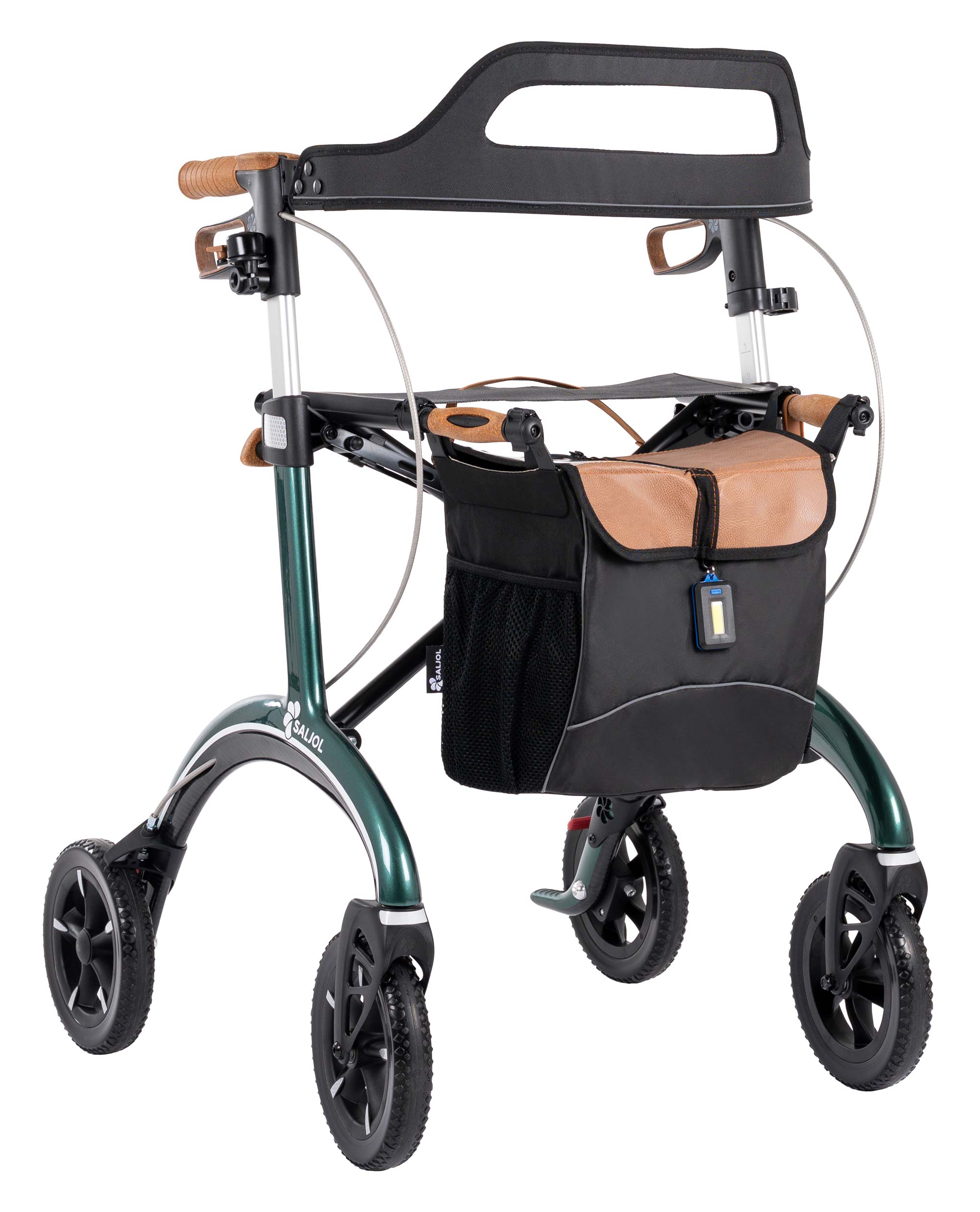 Als mobilisierende Gehhilfe aus dem Sanitätshaus ist der leichte Saljol Carbon Rollator in zwei Sitzhöhen lieferbar und verfügt über eine Hilfsmittelnummer.