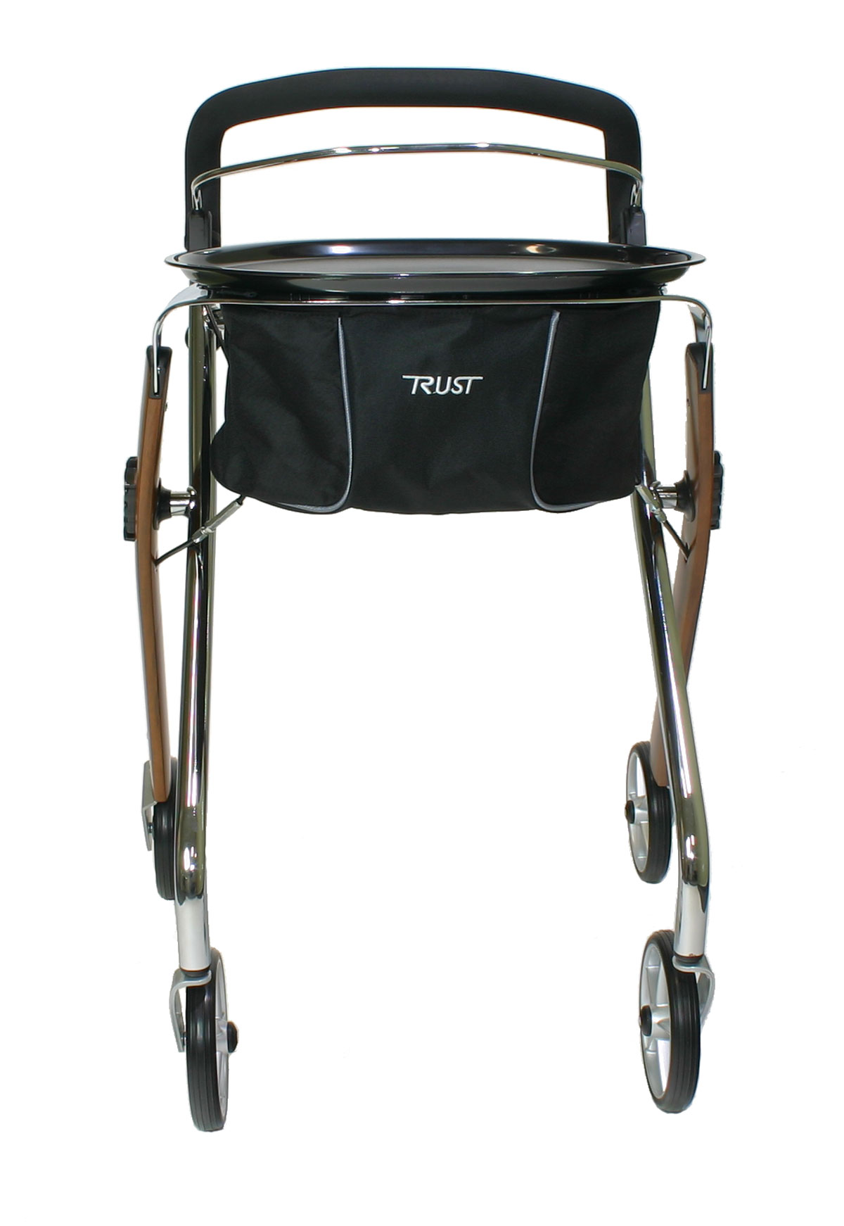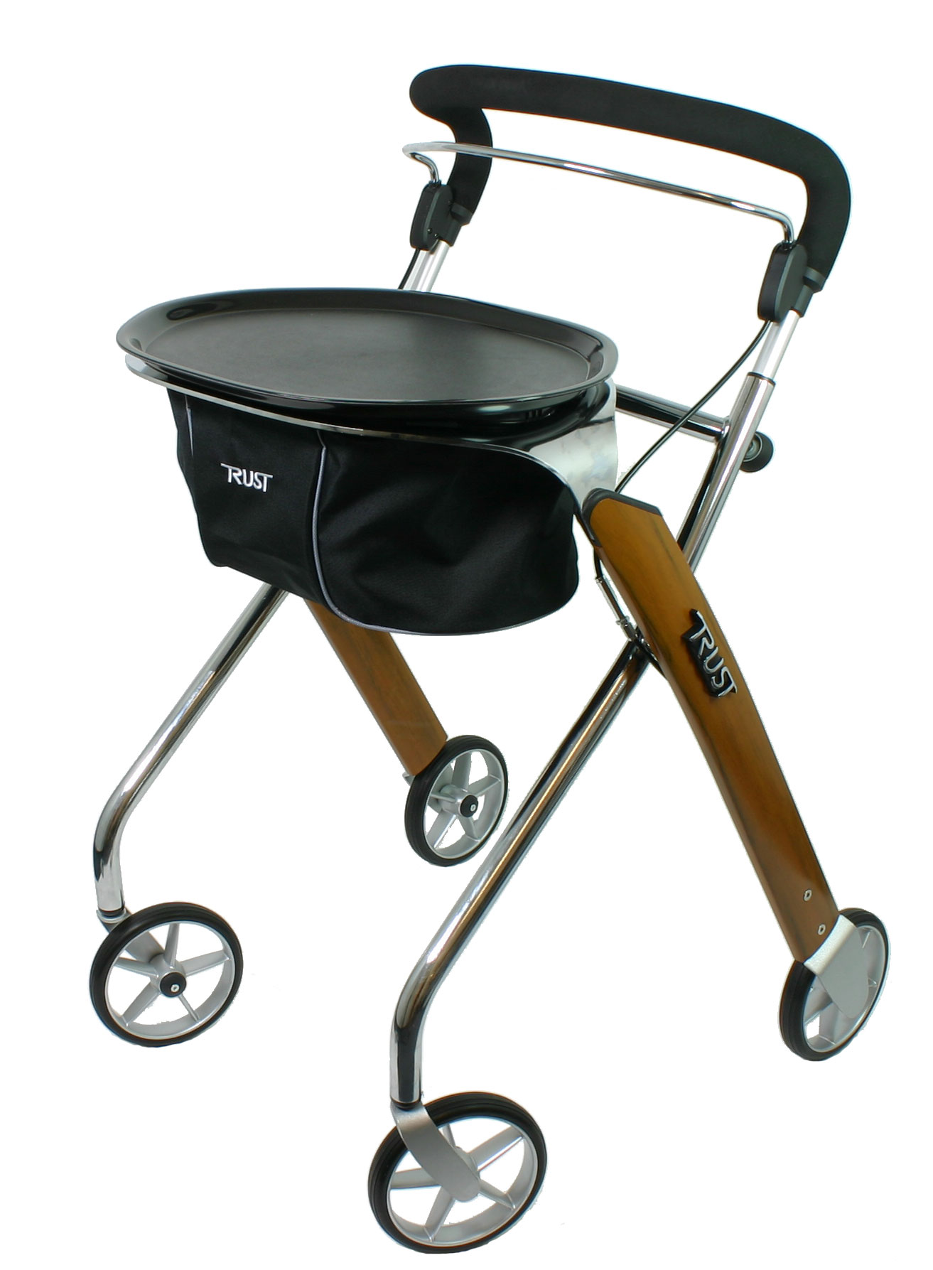 Lieferbar als eleganter Trust Care Indoor Rollator Lets dream walnuss in Holzoptik und Chrom mit schwarzer Tasche oder als moderner Indoor Rollator für die Wohnung in der stylischen Limited Edition Blau-Braun mit zusätzlichem kleinen Netz für Ihre Brille, Telefon oder Fernbedienung bietet er Sicherheit und Komfort beim Erhalt Ihrer Eigenständigkeit.