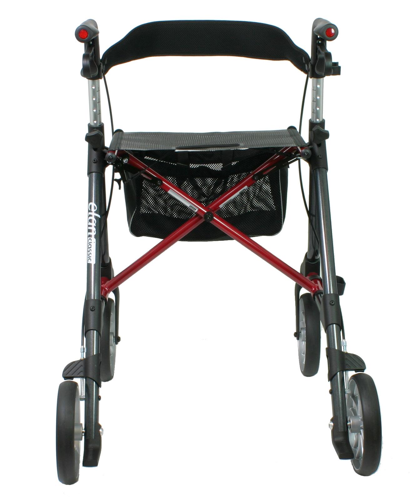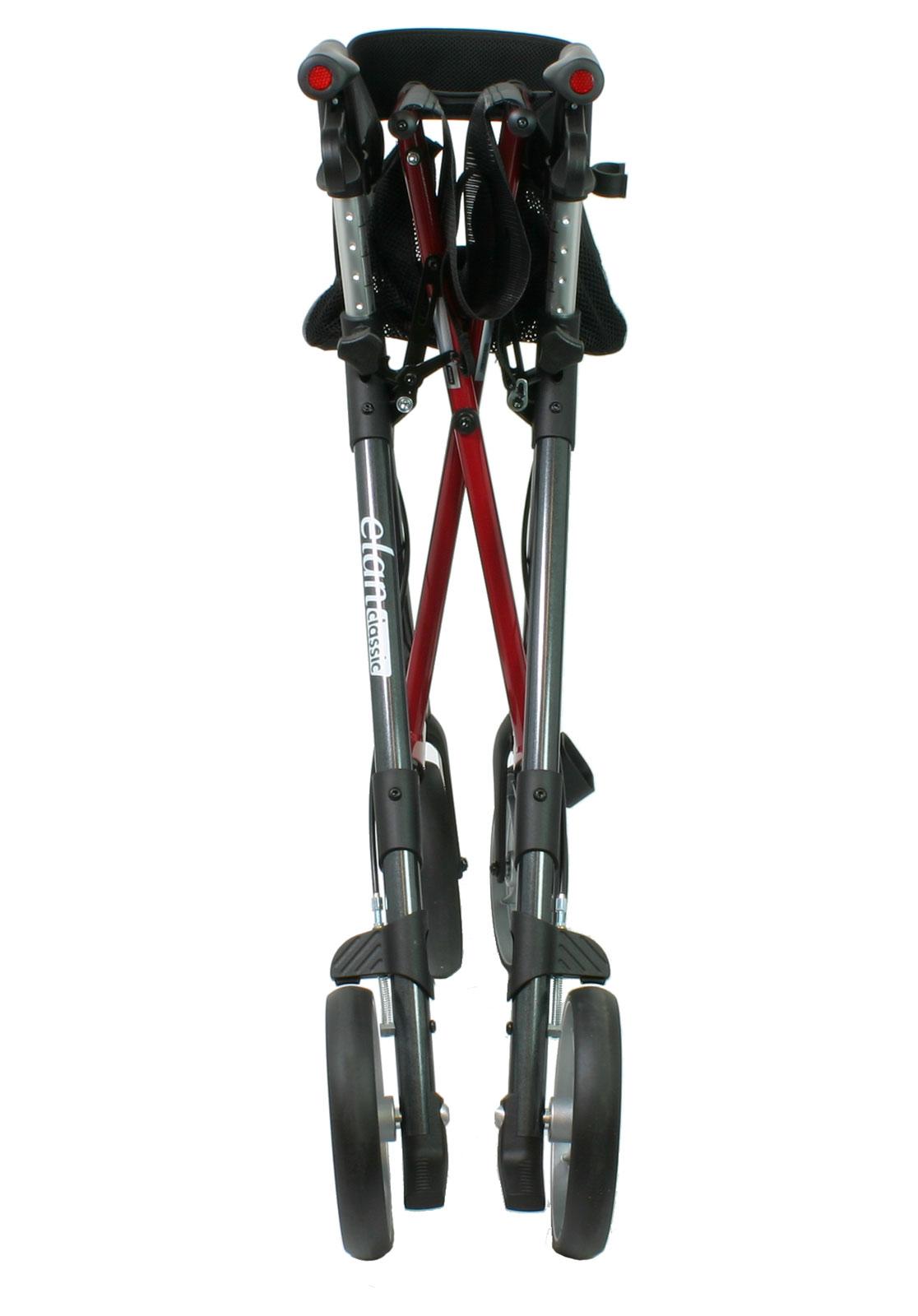 - In den Rahmenfarben champagner oder anthrazit mit dunkelroter Kreuzstrebe wird die mobile Gehhilfe Elan Classic oder mit weichem Rad als Rollator Elan Plus Ihnen ein praktischer Wegbegleiter im schlichten eleganten Design sein.