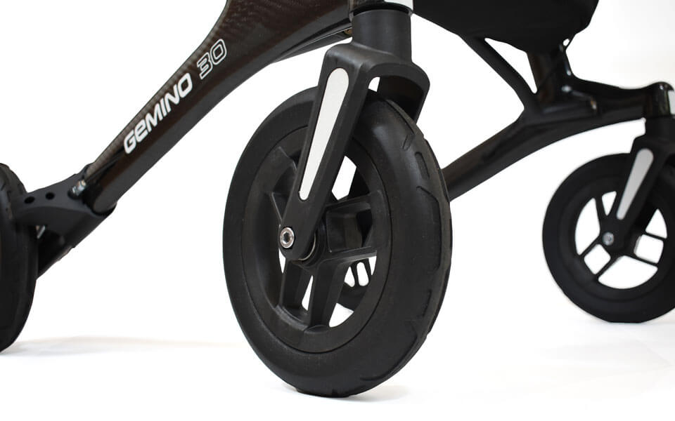 - Mit den weichen Softrädern lassen sich die Gemino 30 Carbon Comfort Rollator auf allen Wegen entspannt führen, da die weichen Soft Räder den ersten Stoß der Unebenheiten abdämpft und Sie so Ihre Handgelenke und die Schultern entlasten