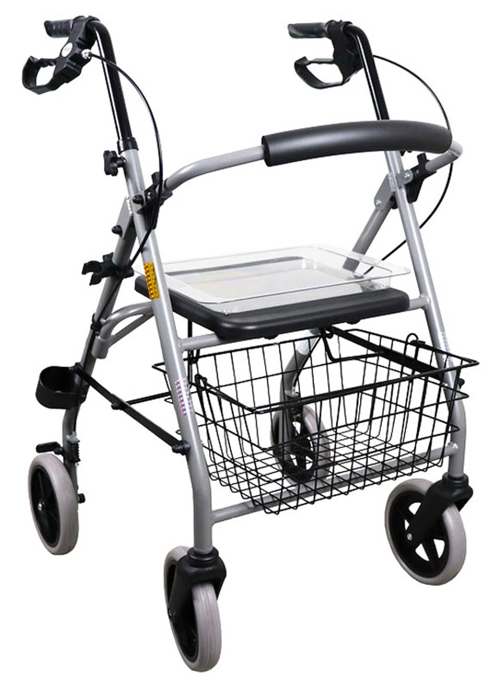 - Lieferung serienmäßig mit Korb, Tablett, Rückenstütze, Stockhalter und Ankipphilfe