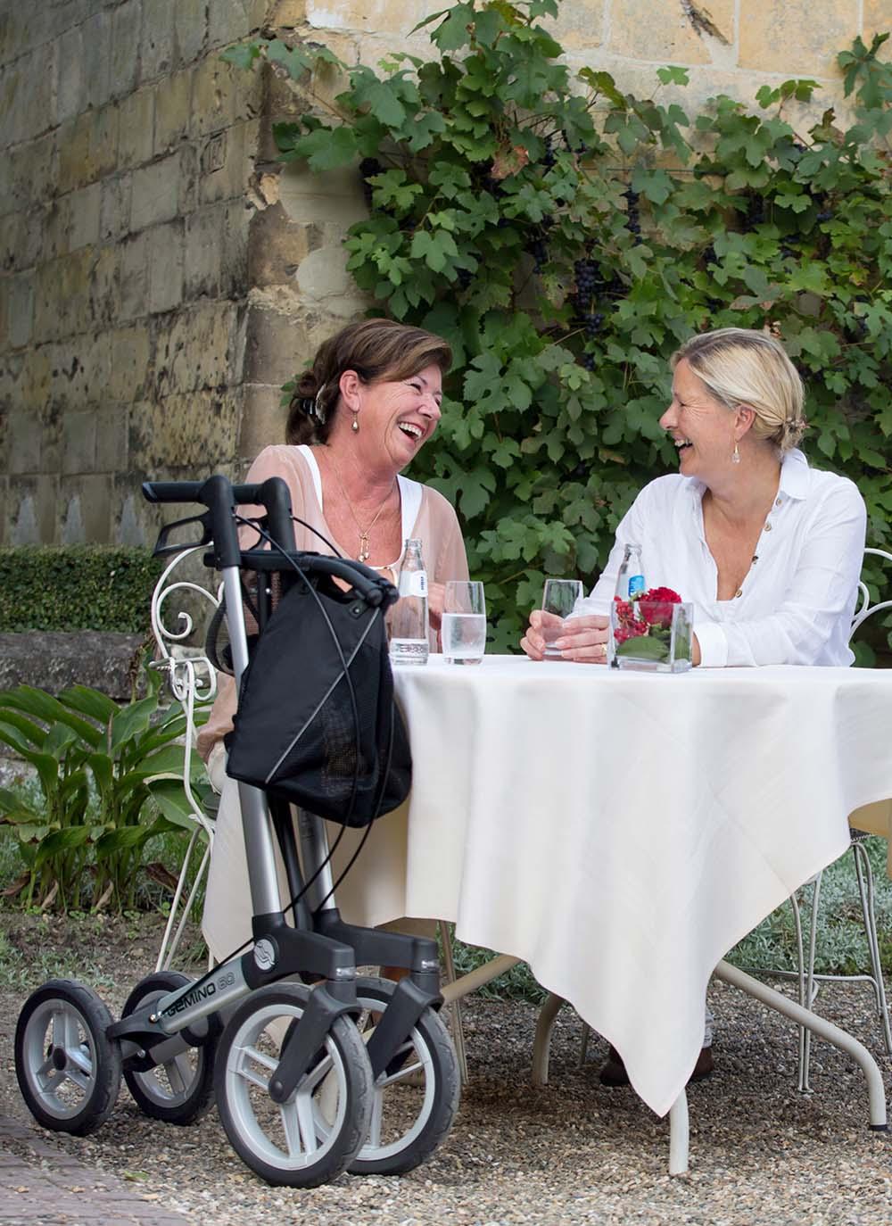 Sein breiter Radstand bietet eine außerordentliche Stabilität und als mobile Gehhilfe garantiert der Gemino 60 Rollator viel Platz zum Sitzen bei Laufpausen.