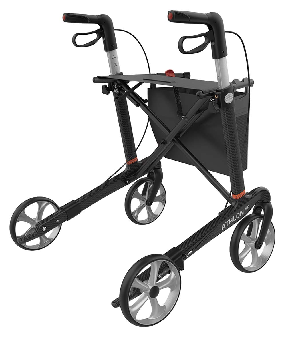 - Der Carbon-Rollator Athlon HD ist in allen Ausführungen einfach längs faltbar und bleibt zum Anheben dank des einfachen Verschlusssystems in dieser Position. Möchten Sie ihn zum Gehen wieder auseinanderklappen, ist er über einen Druckknopf einfach zu öffnen.