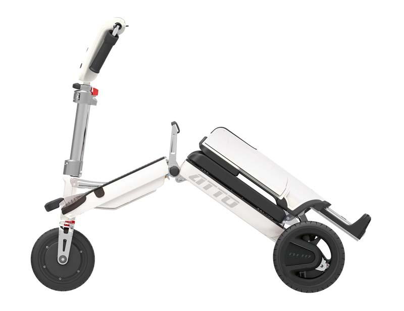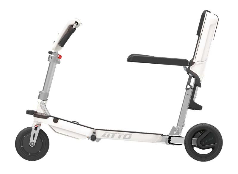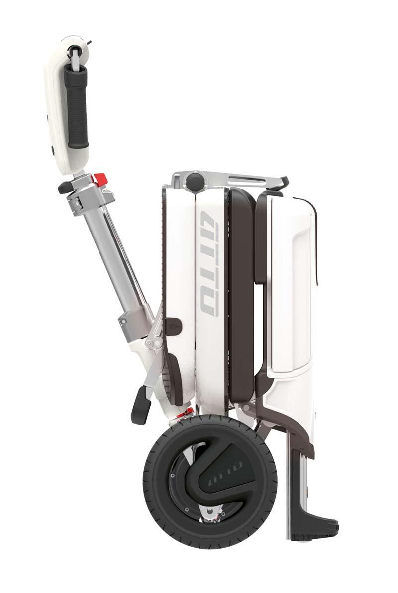 Mit einer Bodenfreiheit von 10 cm ist er vielseitig einsetzbar. Nach der Nutzung lässt er sich einfach wieder klein zusammenfalten und Sie können ihn wie einen Koffer mit Rollen ziehen. Möchten Sie den ATTO anheben, um ihn z. B. im Auto zu verstauen, können Sie ihn einfach werkzeuglos trennen. Das Elektromobil ATTO wurde für den Einsatz sowohl im Innen- als auch für den Außenbereich konzipiert.