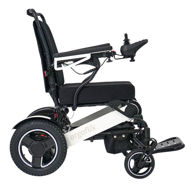 - Der Elektrorollstuhl Ergoflix LX wiegt ohne Batterien nur 25,1 kg. Er lässt sich problemlos im Kofferraum eines Autos verstauen und fährt mit zwei leistungsstarken Akkus bis zu 24 Kilometer weit.